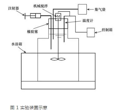 本實(shí)驗(yàn)使用的裝置為有效容積為1.0 L的玻璃瓶,外置黑布,瓶口橡膠塞上開(kāi)兩孔,分別用于攪拌和取樣(圖 1).為保證系統(tǒng)的密封性,取樣采用注射器進(jìn)行抽取.反應(yīng)器配置攪拌裝置維持轉(zhuǎn)速為80 r˙min-1.反應(yīng)裝置放在恒溫水浴鍋中,溫度設(shè)為35℃.本實(shí)驗(yàn)的水力停留時(shí)間為8 h,每隔0.5 h取一次樣進(jìn)行水質(zhì)分析,進(jìn)水pH控制在7.5左右.