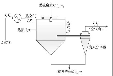 關鍵詞:脫硫廢水;零排放;蒸發(fā)塔;蒸發(fā)特性;熱量衡算