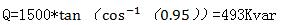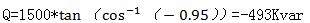 ;當風電機組=0.95時,此時風力發(fā)電機發(fā)出的感性無功